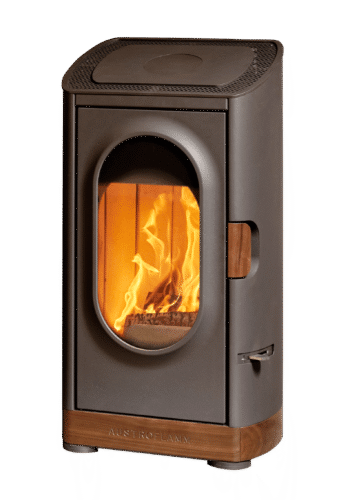 The Austroflamm Woody is defined by its materials, design and workmanship. Each fireplace is a complement of steel with beech and walnut finishes. The bevelled cast lid of the Woody gives this Austroflamm stove an interesting shape that leaves a lasting impression. However, the eye-catcher par excellence is above all the oval viewing window, which frames the flames.