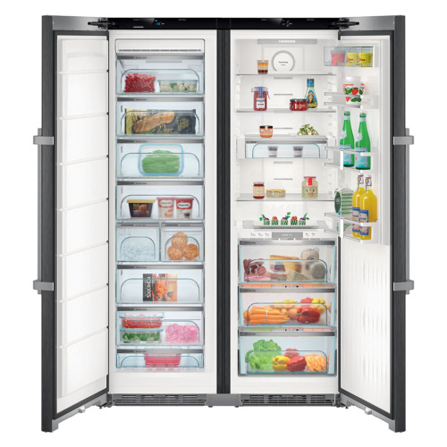 BlackSteel is a unique black stainless steel finish offering hi-tech appeal while still retaining a timeless elegance. Finished with a modern industrial style aluminum door handle, with integrated door opening mechanism for convenient and minimal effort, Liebherr’s BlackSteel side by side fridges will still complement other stainless steel appliances such as dishwashers, cookers and canopies.