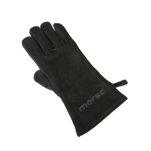 This practical protective glove is made with thick leather and is available in black with the Morsø logo black.