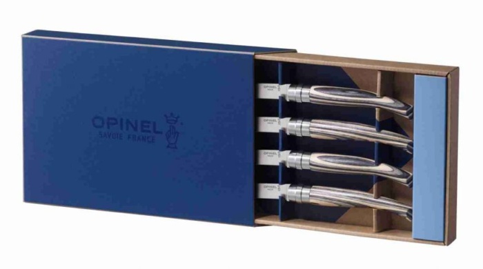 The chic Grey, White and Anthracite Laminated Birch Wood Table Knife Set contains 4 elegant knives with unparalleled cutting quality. The original blue stiff cardboard case is ideal for storing and protecting the knives and makes this an unusual gift.